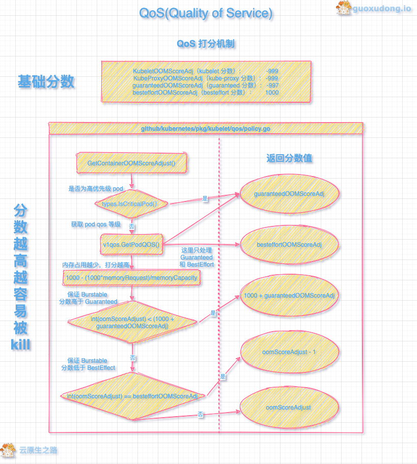 QoS 会根据不同的分类进行 OOMScore 打分,当宿主机上内存不足时,系统会优先 kill 掉 OOMScore 分数高的进程。